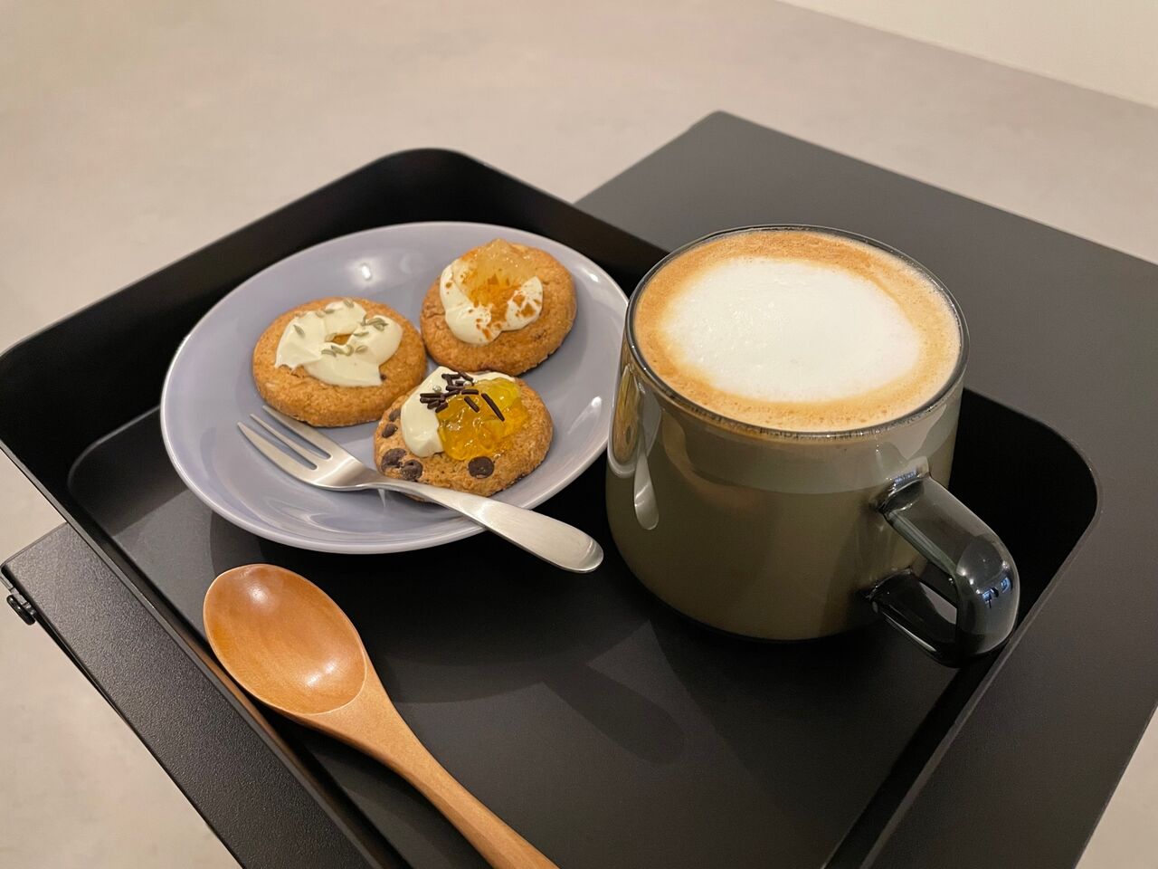 迷った挙句、ラテとクッキー3種類にしました