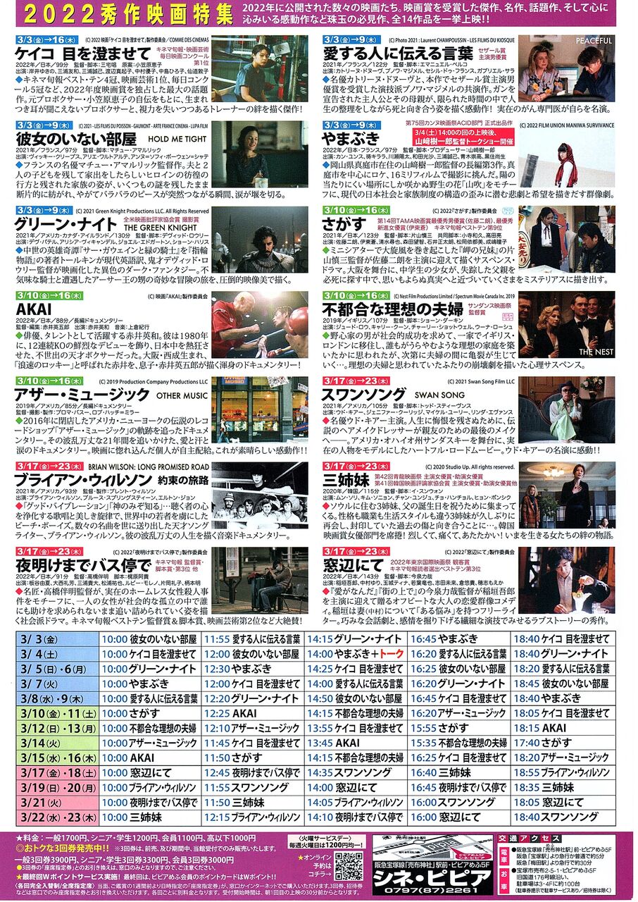 宝塚唯一の映画館、売布神社駅にあるシネ・ピピアで、3月3日(金)から『2022秀作映画特集』が開催されます