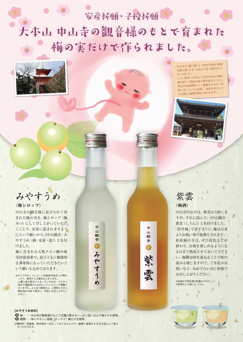 中山寺の梅で作ったお酒とシロップ