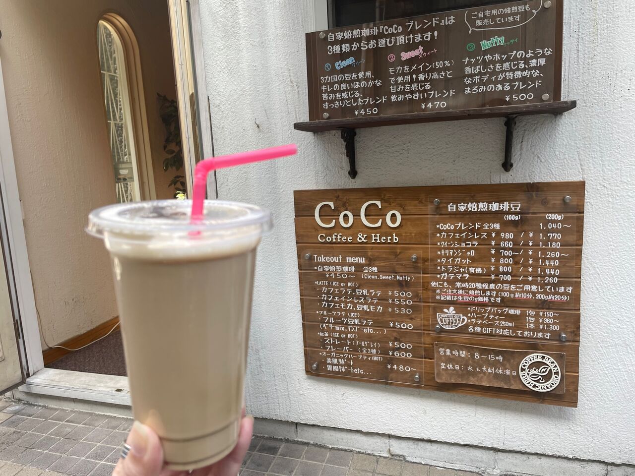 スタンドスタイルの小さなお店ですが、白い壁のおしゃれな外観!近くまで来ると、店の外まで焙煎されているいい香りが~~誘われるように足を踏み入れました。