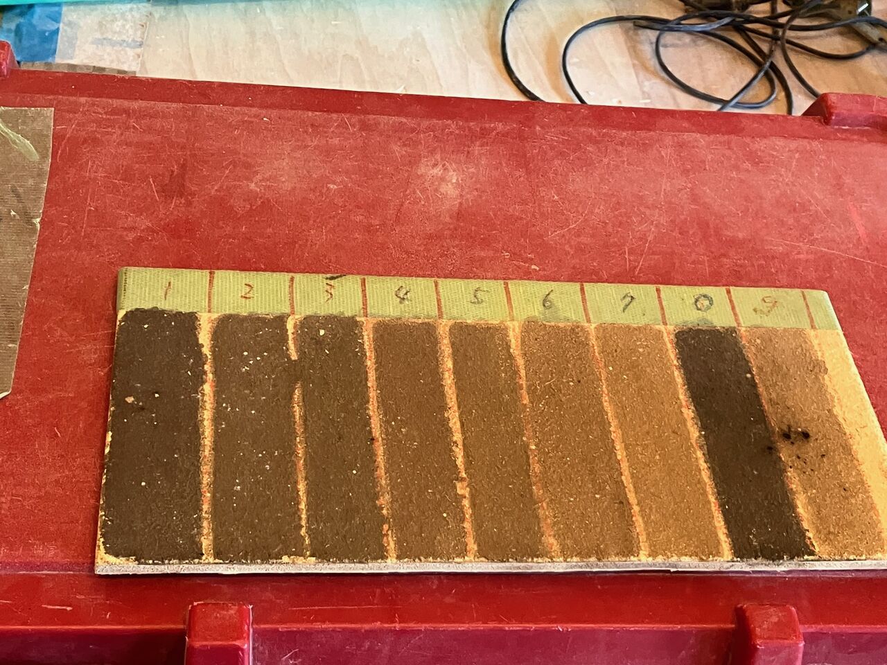 たくさんの土壁のグラデーションの見本も