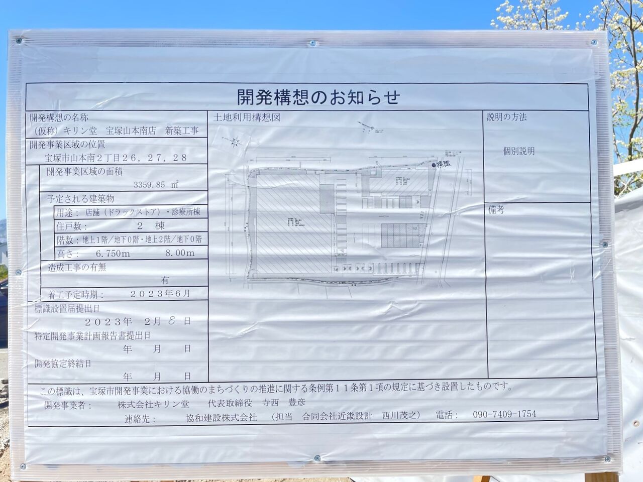 「宝塚山本南にドラッグストア+調剤+医院の施設がオープン!医療モールは2階建て2診で、2024年春竣工予定です!」