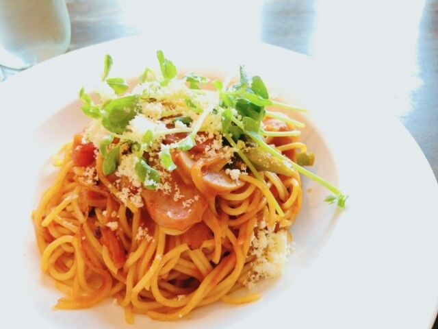 トマトソースが甘めです。子どもの頃によく食べていたナポリタン。