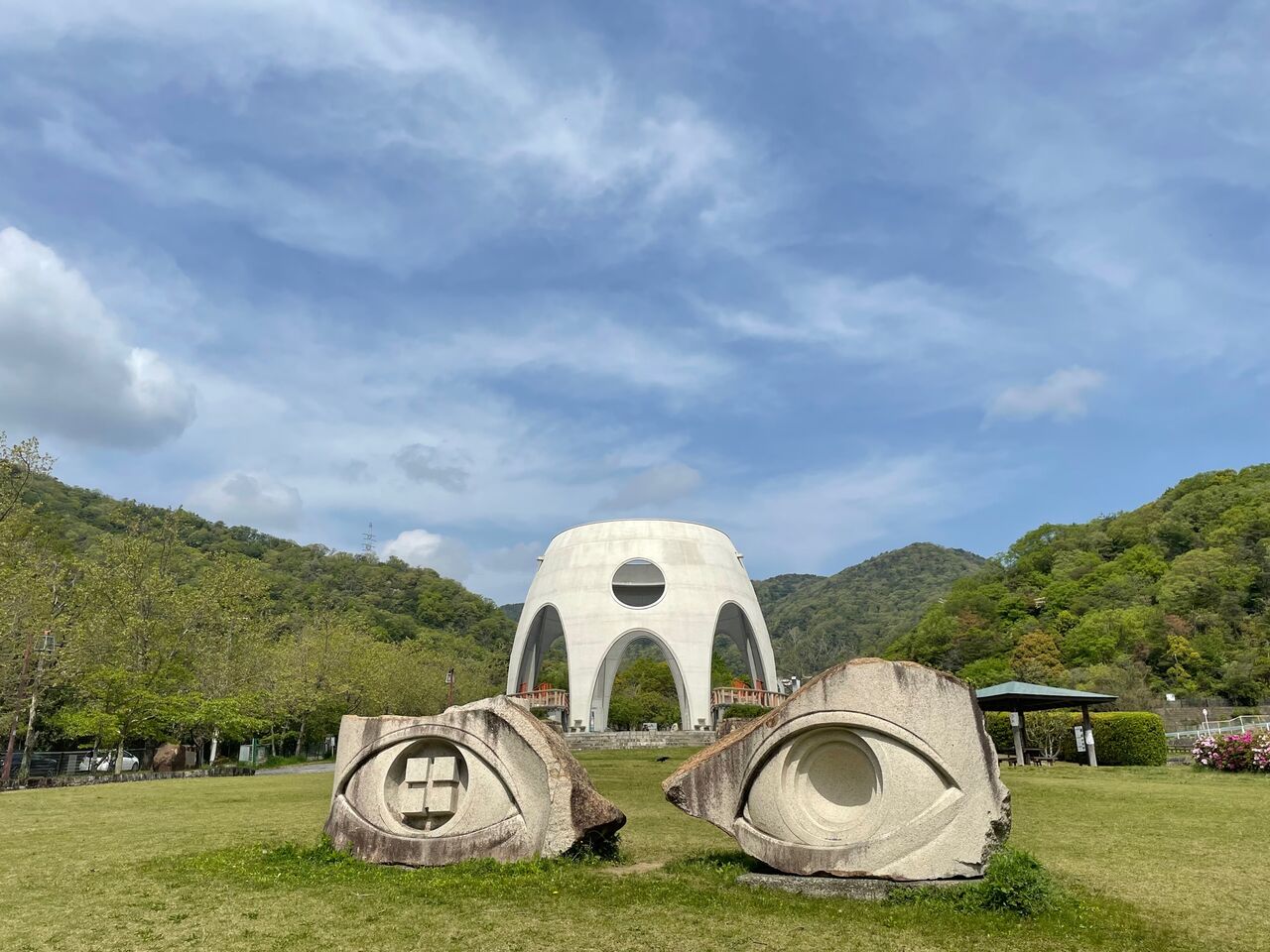 入口近くにあるこちらの目のモニュメントは北野正治さんの「光の舞台」という作品。他にもたくさんあるので、一つひとつ鑑賞するのも面白いですね。