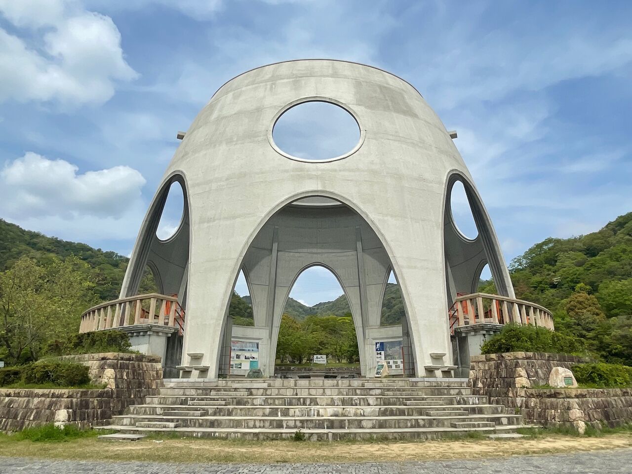 これはドーム型の砂防モニュメントで、逆瀬川が兵庫県の砂防事業発祥の地であることから建設されたんだそうです。中は、砂防についていろいろ学べるようになっていましたよ。