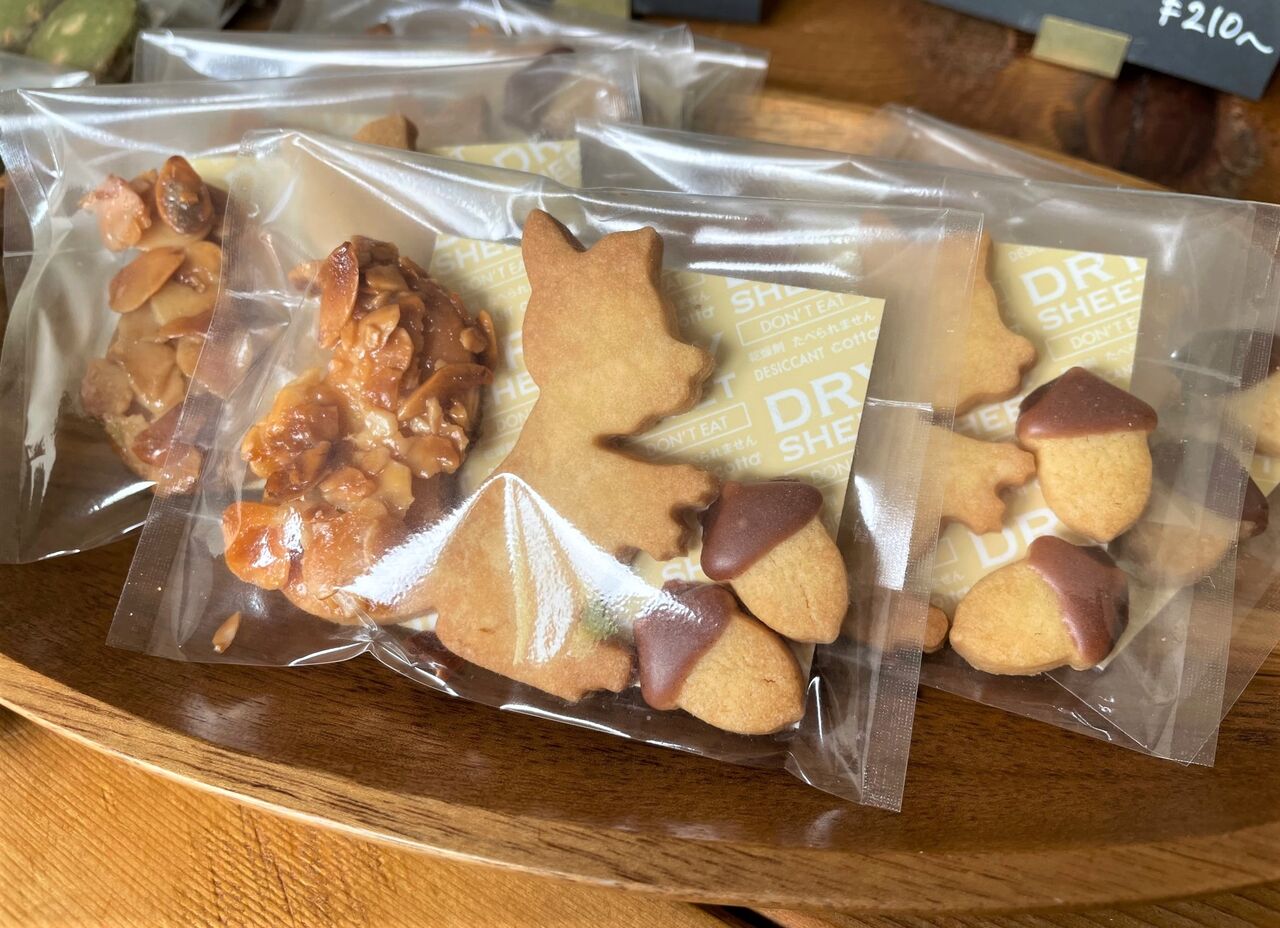 秋限定だったものが好評につきレギュラー入りしたという「りすのフロランタン」(1セット320円)や、どう見ても小さなさつまいもの輪切りにしか見えない「さつまいもクッキー」(3枚110円)などなど、思わず「きゃ~~可愛い~~~!美味しそう~~~!」と心の声がダダ洩れに(笑)。
