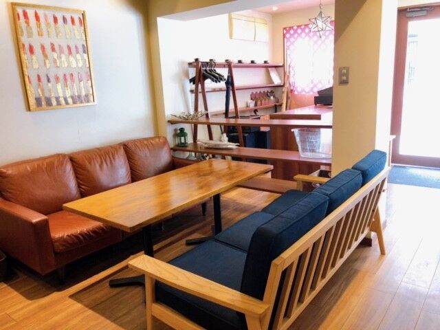 明るい店内のテーブル席はいろいろなタイプがあります。
