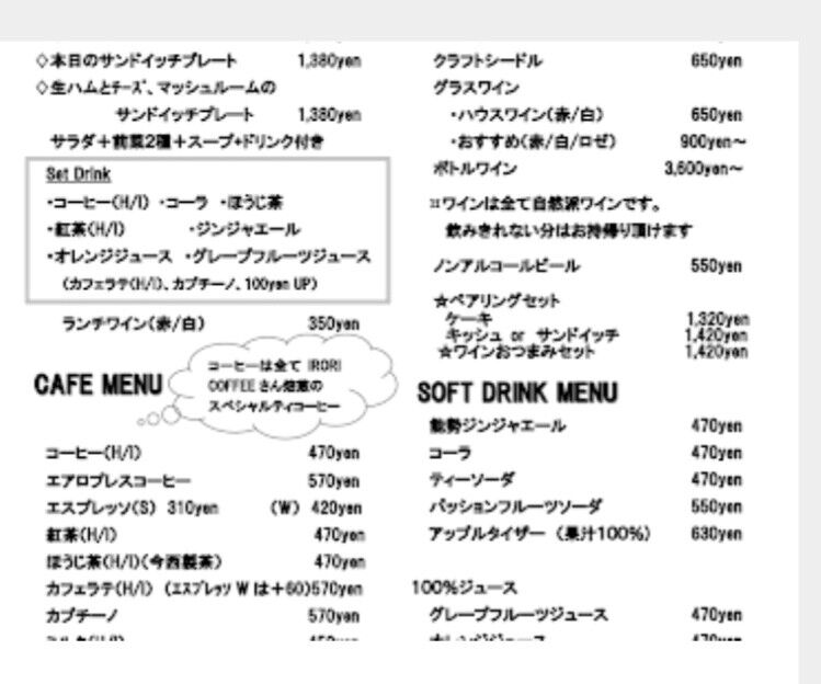 ドリンクは、ラテとカプチーノは100円アップになります。
