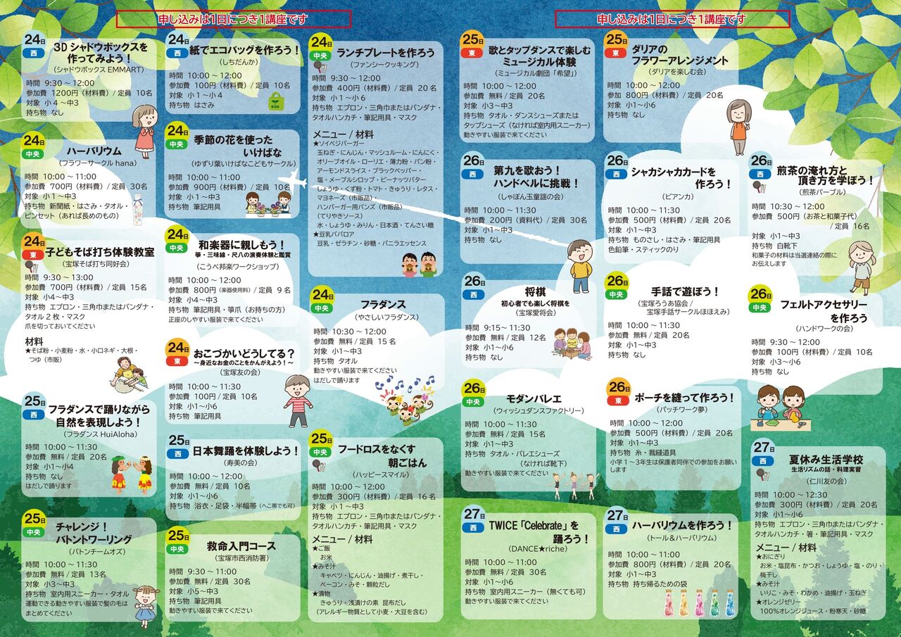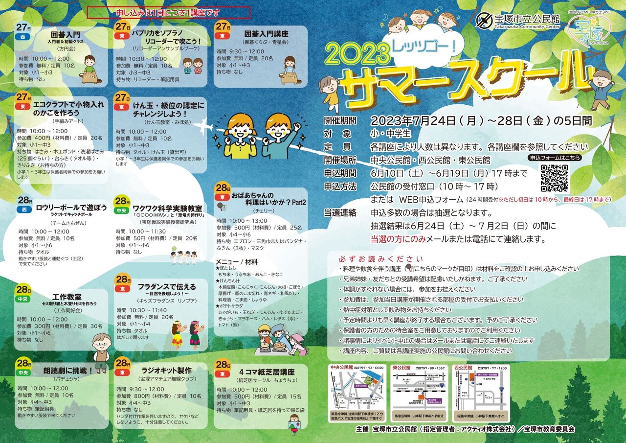 日頃、市内にある3つの公民館で活動されているさまざまなグループの方々が指導者となって、小・中学生を対象に楽しい学びの講座、オープンセミナー『レッツゴー!サマースクール2023』を開催してくださいます。