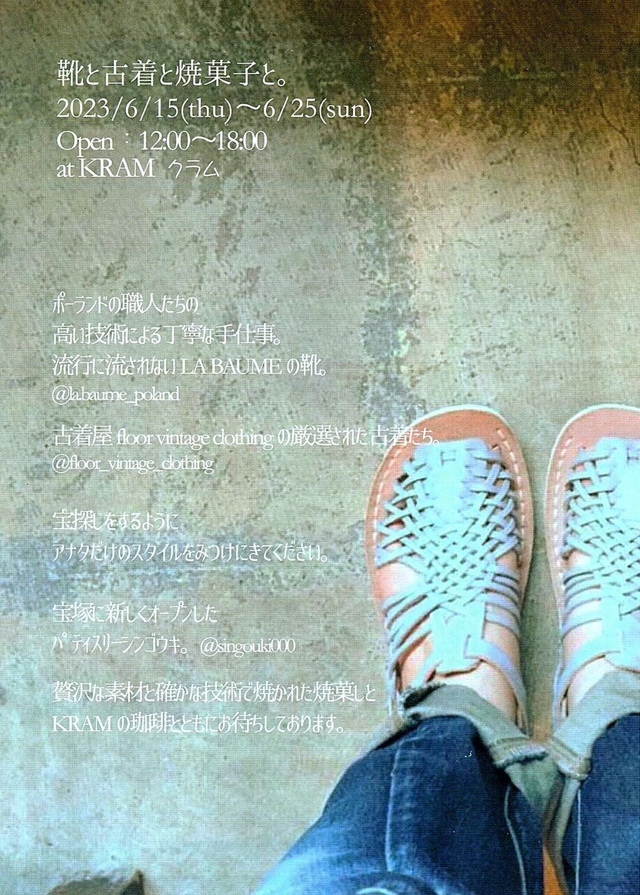 6月15日(木)~25日(日)まで開催される、その名も『靴と古着と焼菓子と。』