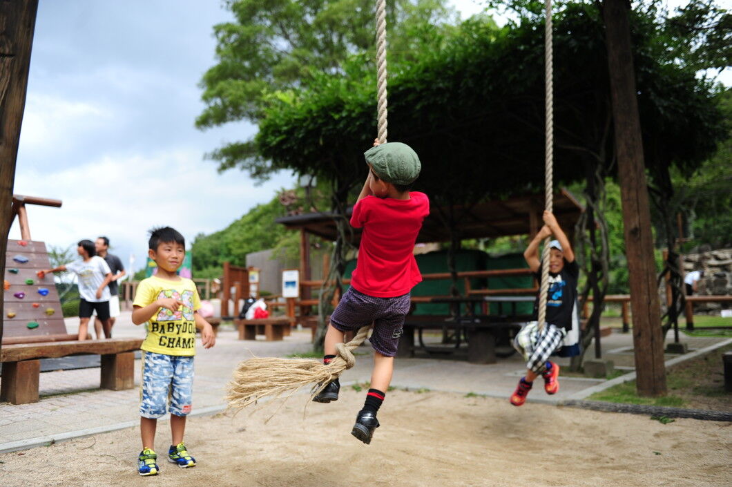妙見の森はちょっとしたハイキングにぴったりで、バーベキューテラス、木製遊具、ケーブル山上駅には足湯などがありました。