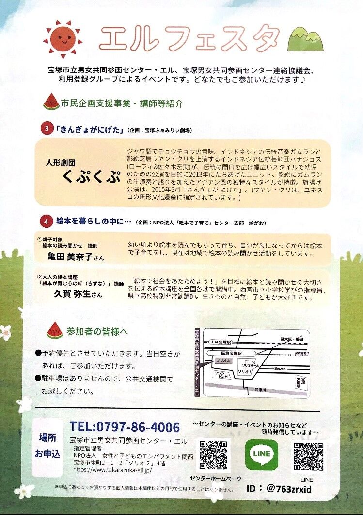 宝塚市立男女共同参画センター・エルで8月26日(土)『エルフェスタ』が開催されます