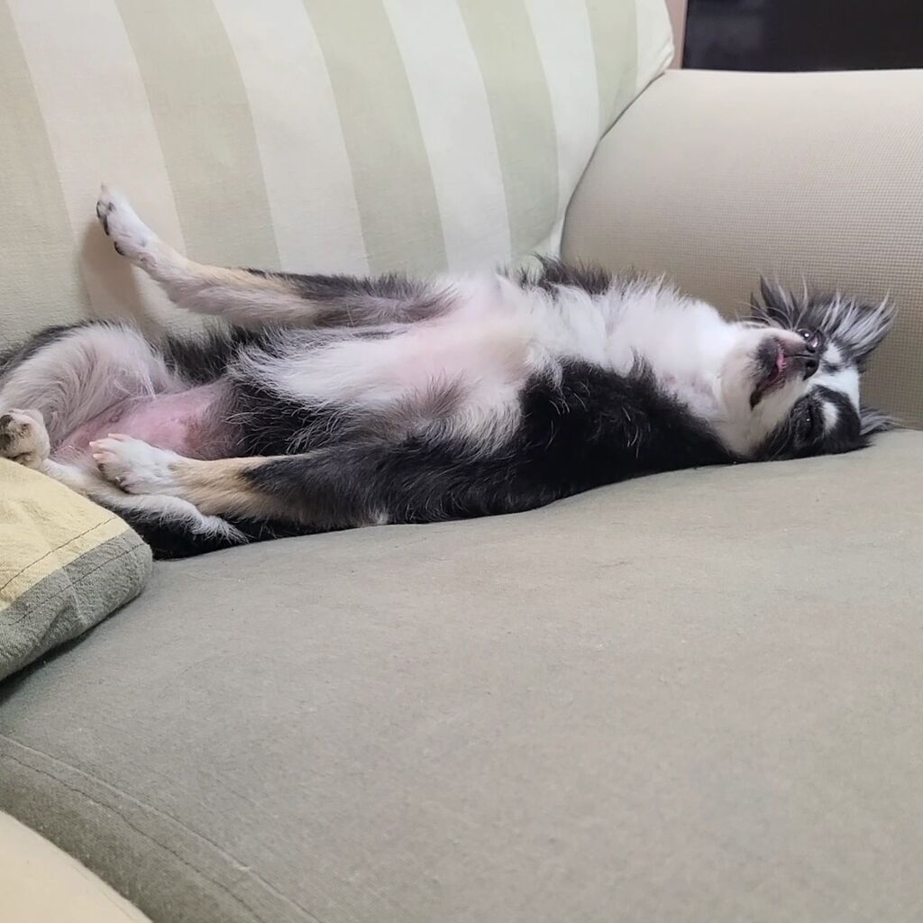 大好きなお散歩の時も大好きなおやつ食べる時も寝る時もそらみは全力です。8歳からの新しい生活を全力でエンジョイしてくれています。天真爛漫おてんば娘のそらみが家族みんな大好きです。これからも自由気ままに生きて欲しいです。