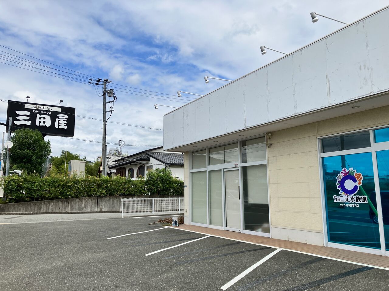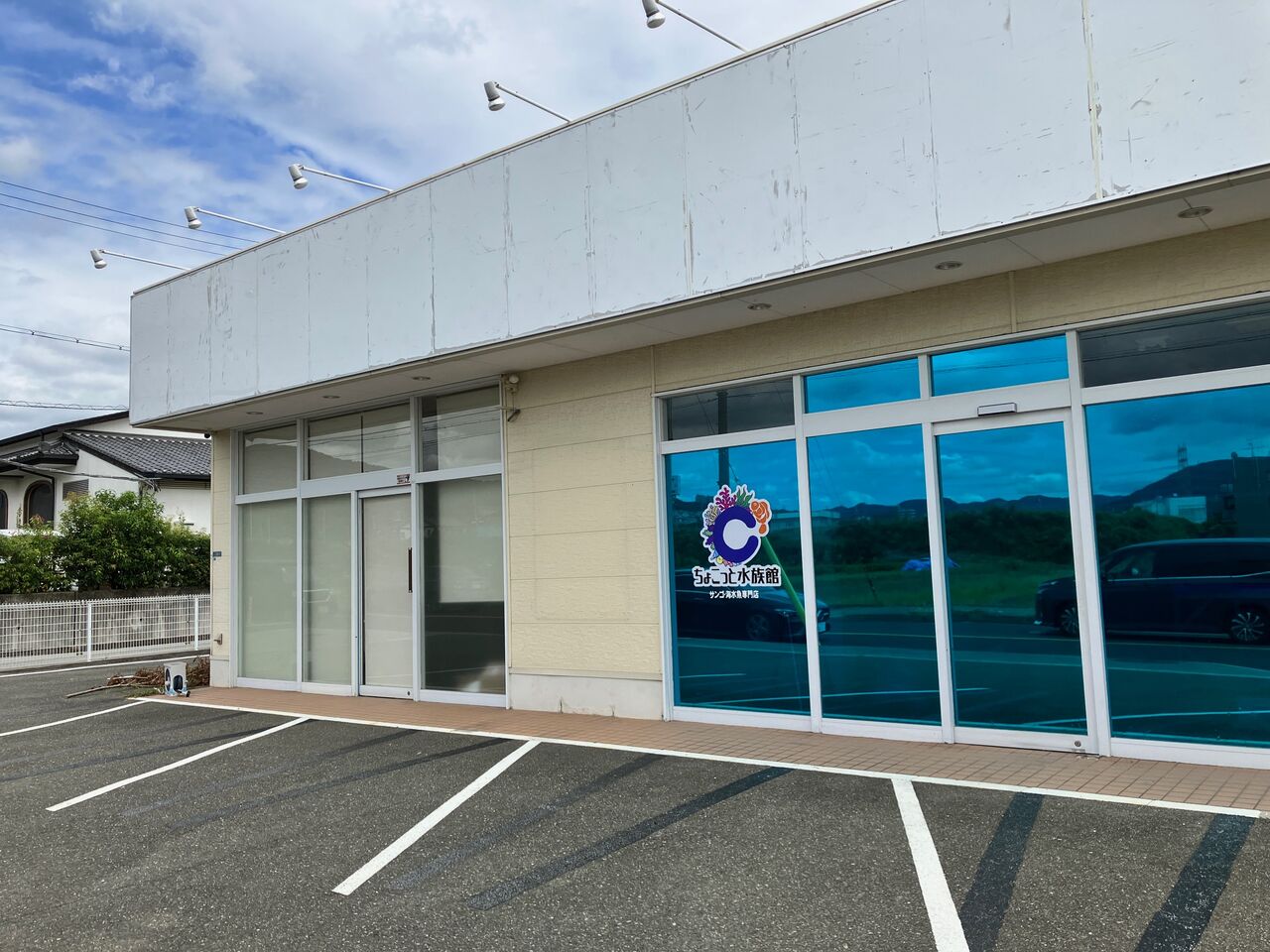青いガラス窓に、「ちょこっと水族館」とあります。