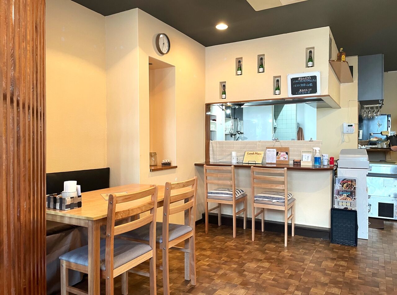 店内は清潔感がありながら、どこかホッとするような居心地のよさも。テーブル席とカウンター席が並んでいました。