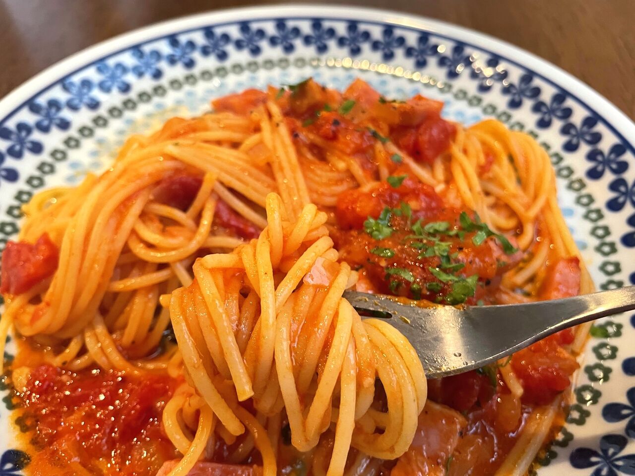 このソースもボリュームたっぷり。パスタにしっかりと絡めながら食べ進めても、最後のひと口までトマトソースの美味しさが楽しめる大満足のひと皿でした。