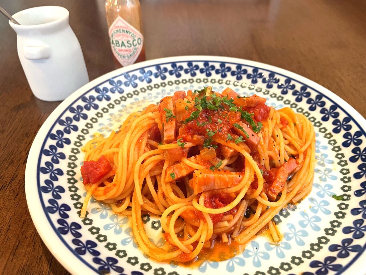 そしてメインのパスタは「ベーコンのトマトソース」をオーダーしました。