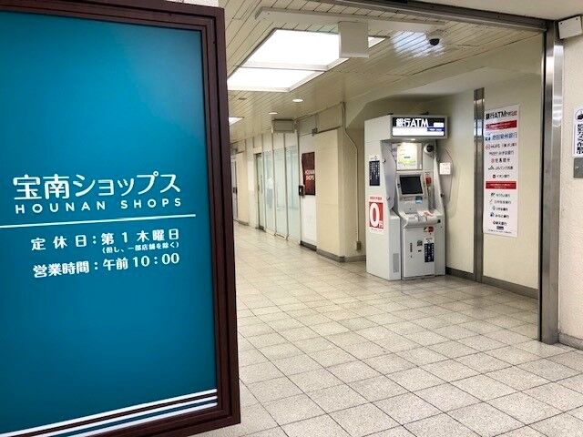 こちらは、阪急宝塚南口駅の宝南ショップスにある『駅ナカ銀行ATM』です。ステーションATM『Pat Sat』パッとサッと!阪急電鉄と池田泉州銀行が共同で設立した「ステーションネットワーク関西」が運営する駅ナカATM。池田泉州銀行、三菱UFJ銀行、みずほ銀行など提携銀行のキャッシュカードが、自行ATMと同様に時間内は引出し手数料無料で利用できます。時間内とは、平日8:45~18:00までです。阪急宝塚駅、宝塚南口駅、逆瀬川駅、小林駅の改札外にあります。