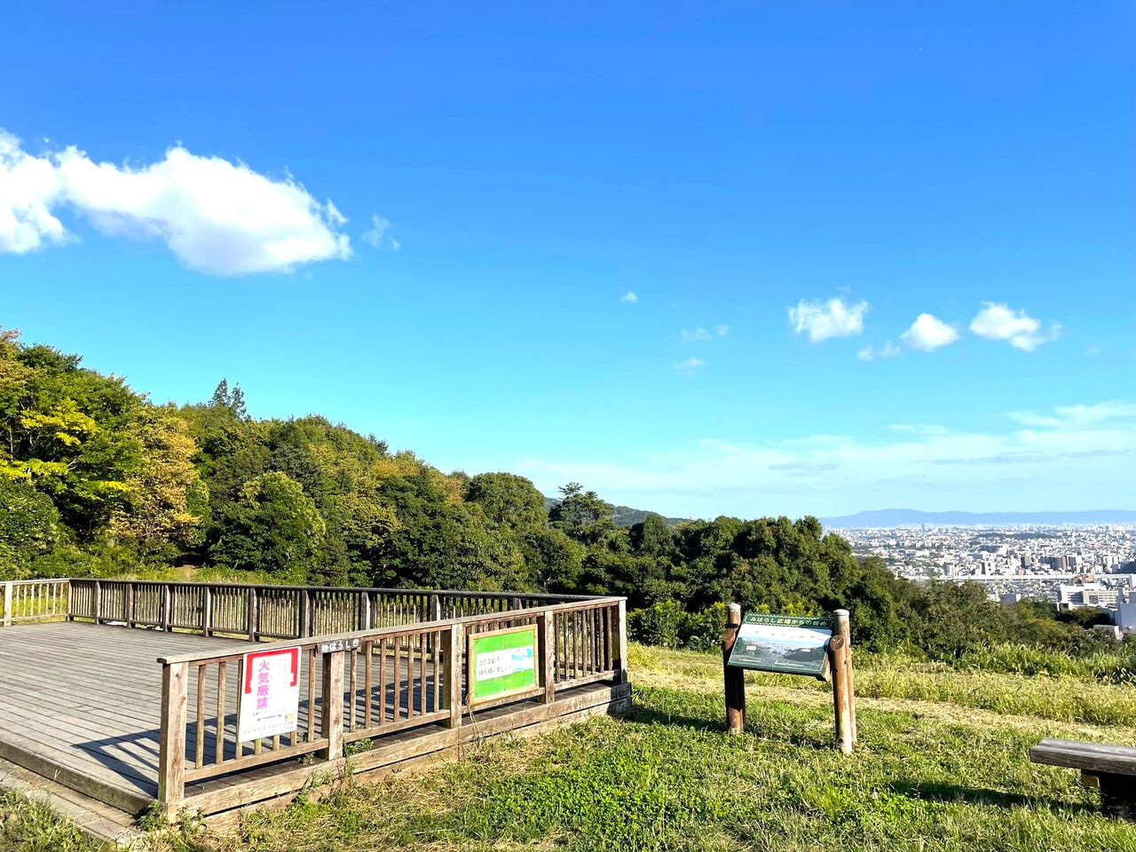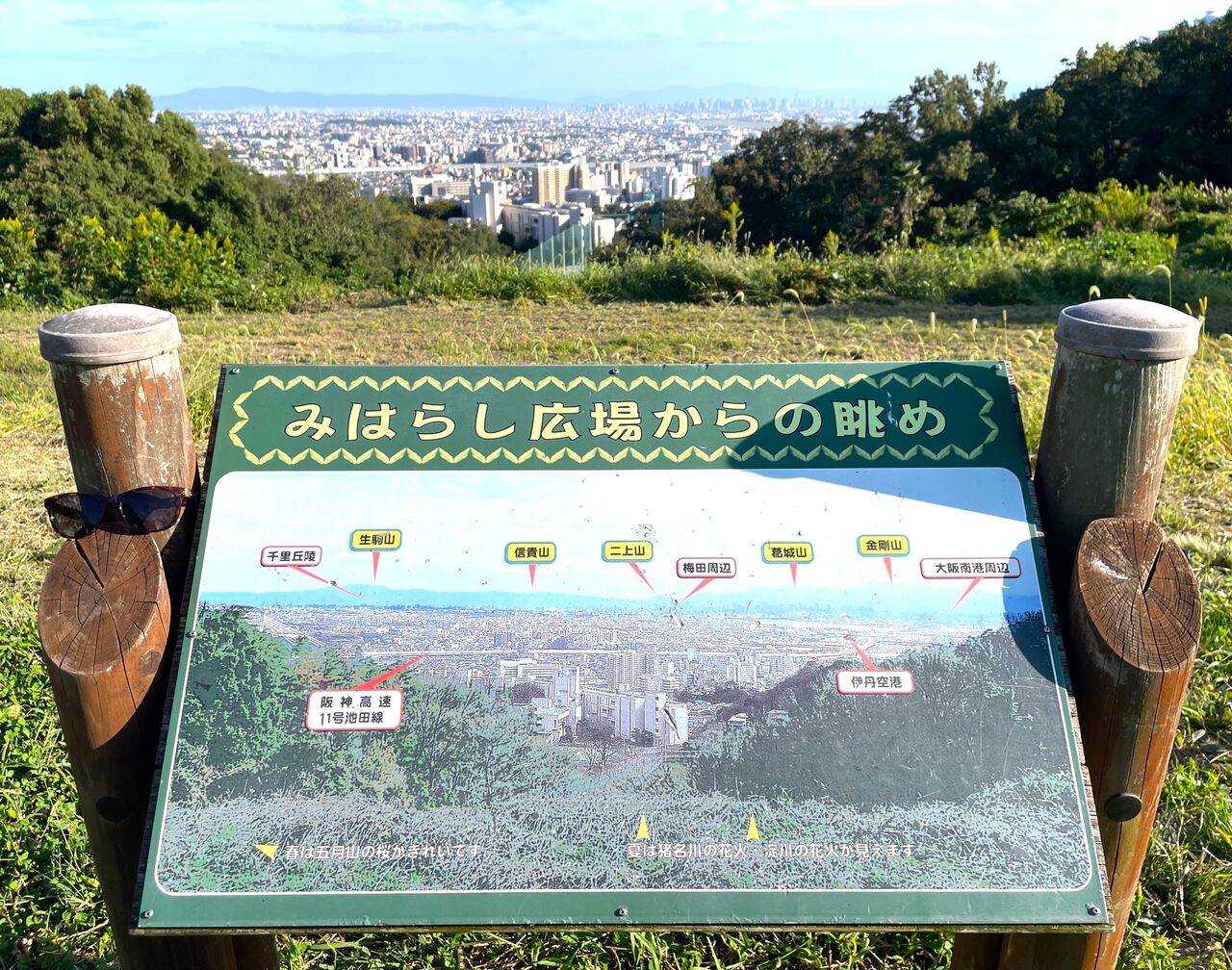 みはらし台の横に設置されている看板を見ると、生駒山や金剛山、伊丹空港や大阪梅田の方まで見えるようです!
