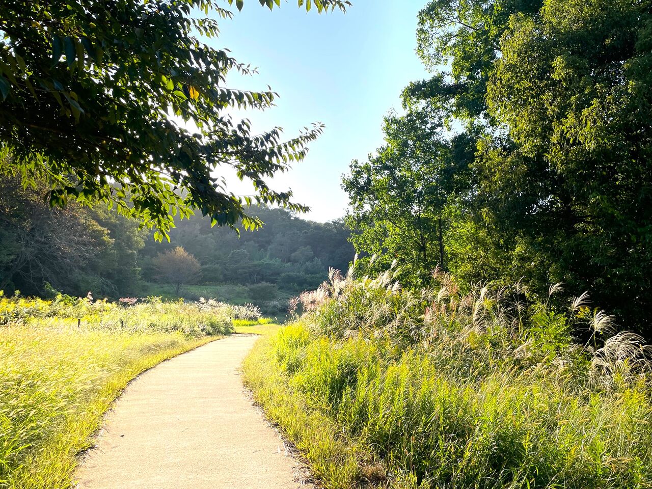 公園内は、散歩気分でまわることができる舗装整備された遊歩道と、ちょっとした山登り気分も味わえる自然を残した野趣あふれる山道があります。その日の気分やご自身の体力でコースを決めるといいかもしれません。