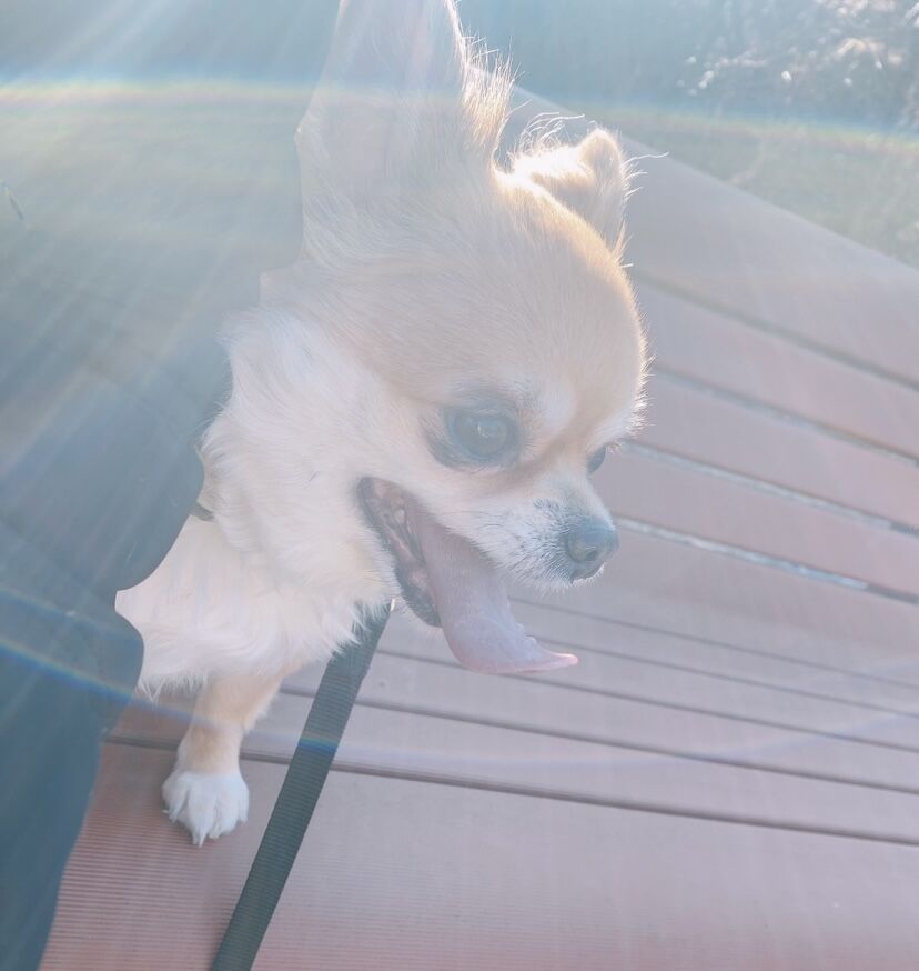 お散歩が嫌いなサンタくん。 お出かけはいつもバギーか抱っこ(笑) いつも『何犬??』って聞かれるけど、ちょっと大きめチワワです🐶笑