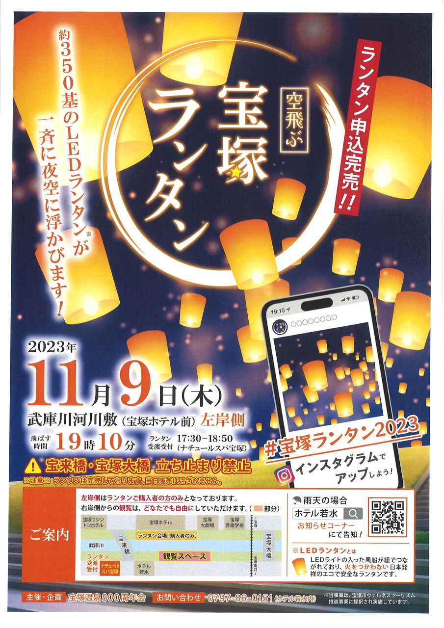 宝塚温泉は今年開湯800年を迎え、11月9日(木)に、約350基のLEDランタンが一斉に夜空に浮かぶイベントを開催します。