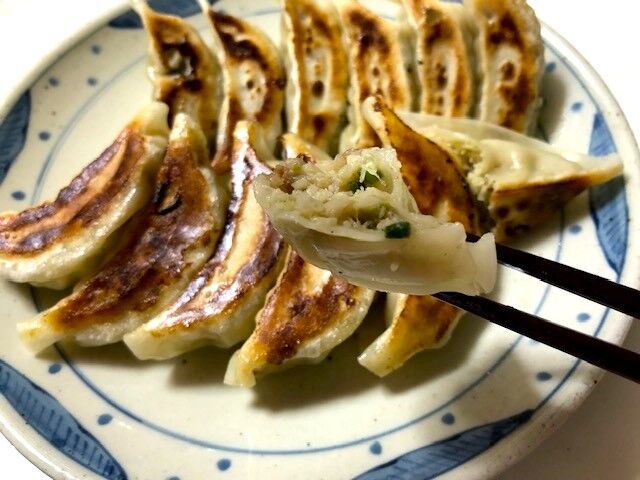 ニンニク入りのぎょうざ6個と、しそぎょうざ6個を焼いてもらいました