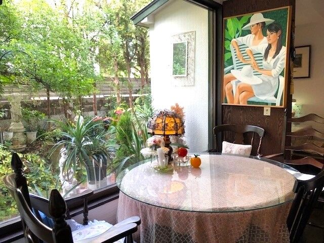 緑が綺麗なお庭が眺められる席です。オーナーさんが一人で営業されているのと不定休なので、予約をしてから行くのがおすすめです。