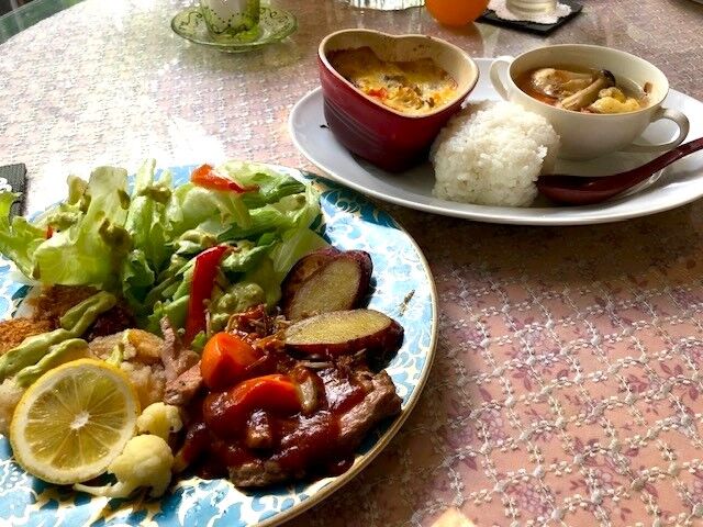 こちらは、ゴロゴロ野菜がたくさん入っている和風味のスープです。里芋や人参も柔らかく、ほっこりやさしい味のスープでした。