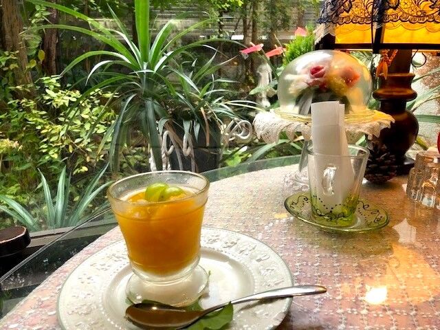 デザートはフルーツのコンポート。オレンジとマスカットが入って、すっきりした甘さで冷たくて美味しくいただきました。