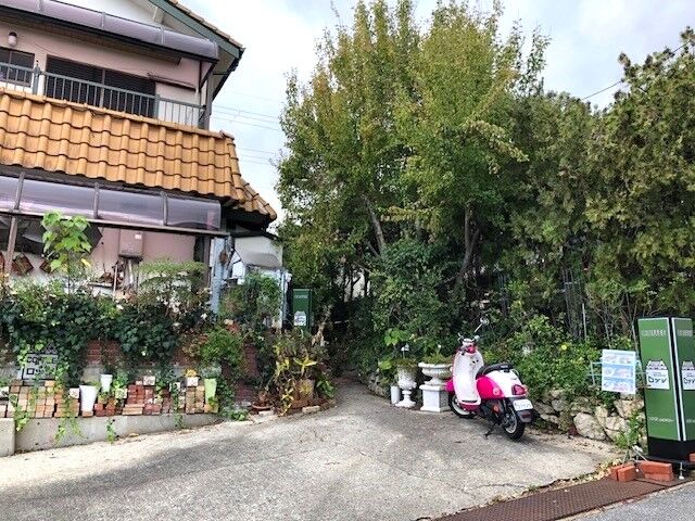 こちらは、お店の裏側(東側)になります。駐車場は4台停められます。住宅街で、駐車場へは宝塚東高校の体育館の前の道を入って行けばたどり着けます。