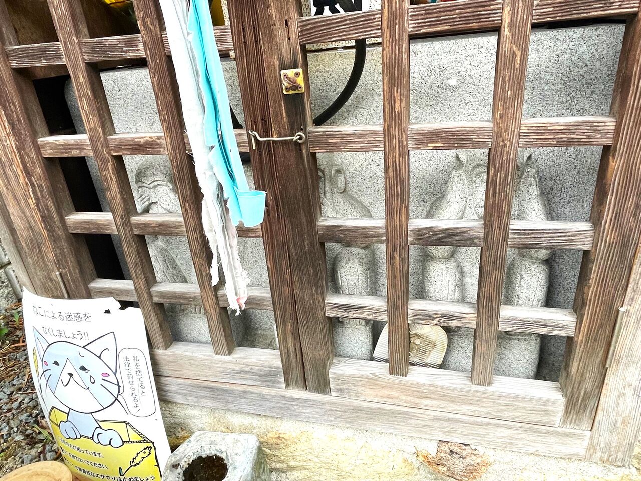まずは手を合わせてお参りをさせていただき、そっと祠の中を覗かせていただいてみました。 小さくて可愛らしい三猿さんがいらっしゃいましたよ~!…あれ、でも確かにちょっと様子がおかしい…。