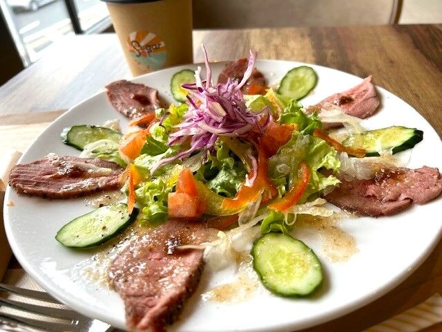 人気メニューの一つ、ローストビーフサラダ(ベーグルセット) 990円 を選択。