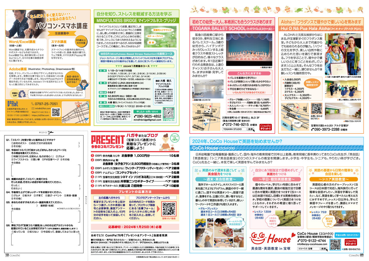 その他グルメをはじめ、FM宝塚のページ、習い事などの情報も掲載されています。