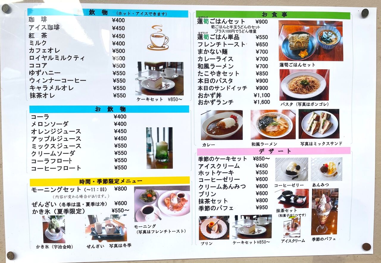 さっそくメニューを見ると、「蓮筍ごはん」は半玉うどんとのセット900円と、単品550円があります。