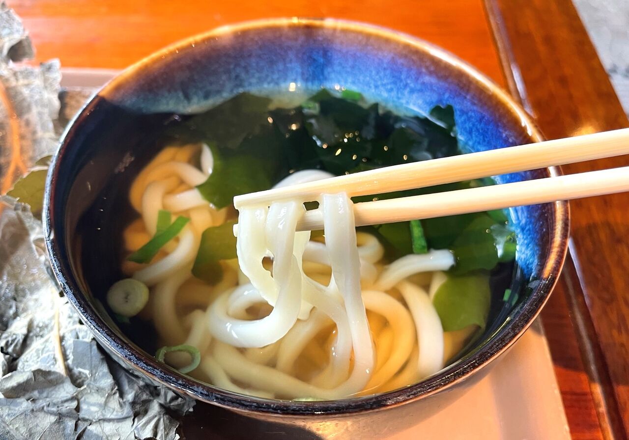 セットのあったか~いわかめうどんも、優しい味わいのお出汁でほっこり。寒いなかの参拝で冷えた体も温まりました。