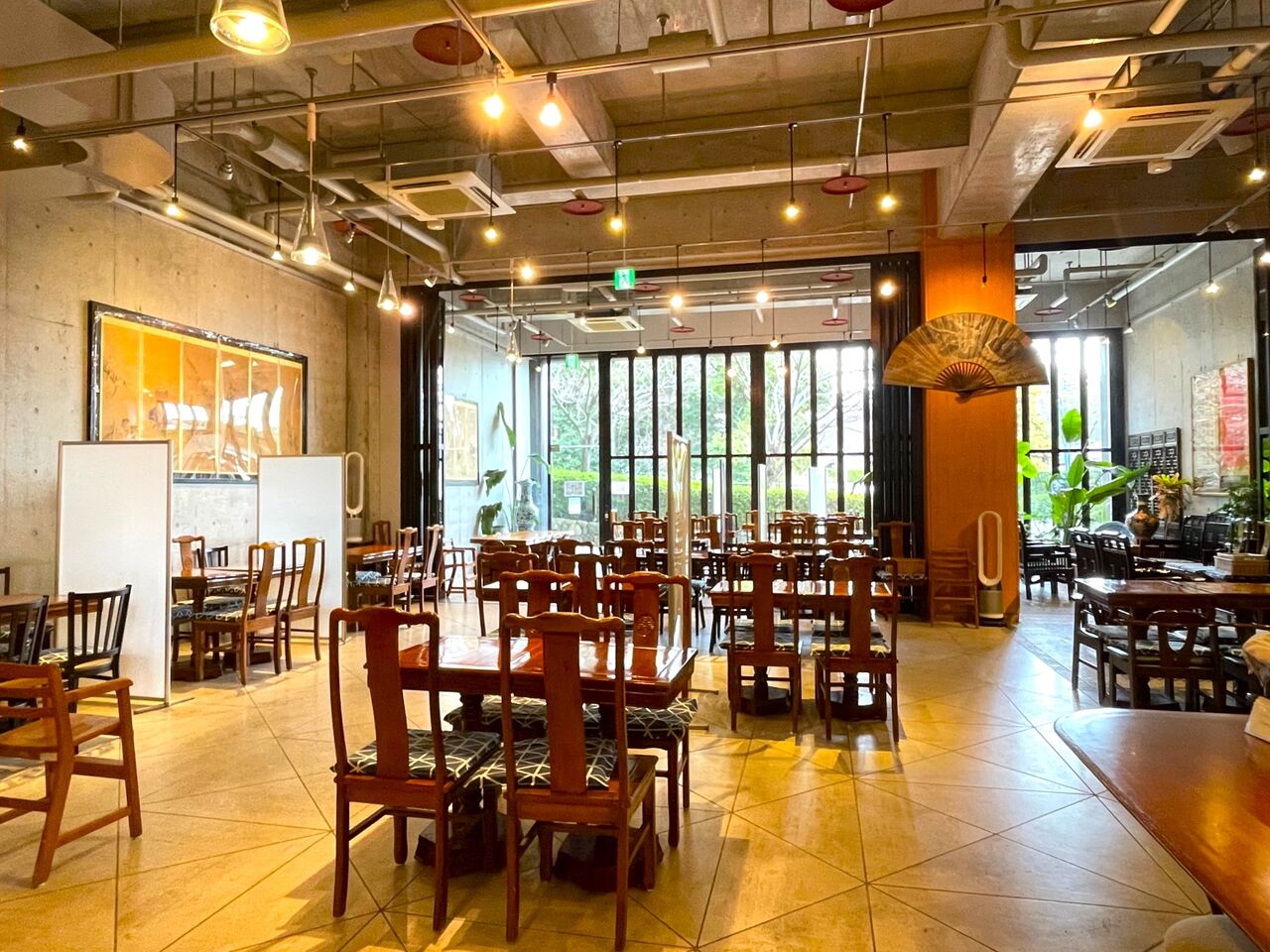 お店に入ると、入口からは想像できないほどの開放感! 席は100席ほどあるそうで、天井も高く広々としています。さすがお寺の中のお休み処なので、仏教関係の装飾などあしらいも落ち着いた大人の雰囲気が漂っていますね。