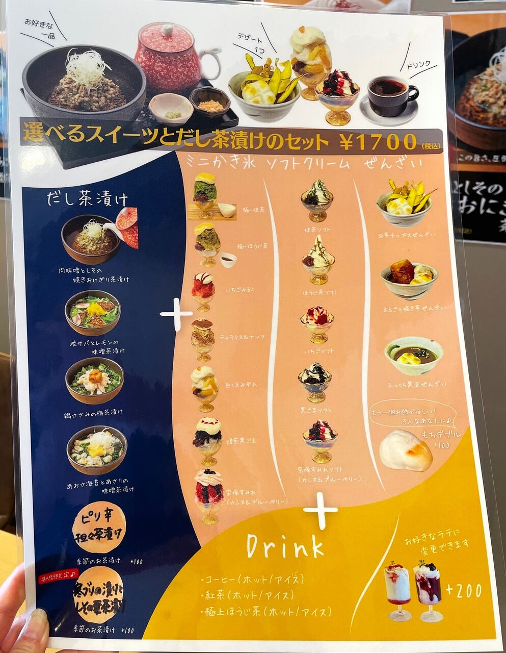 スイーツのセットはミニかき氷かソフトクリームかおぜんざいと飲み物がセットで1,100円。さらにだし茶漬けがセットで1,700円のセットもあります。 お店はなんとお正月休みなし!で元日から営業されていました。