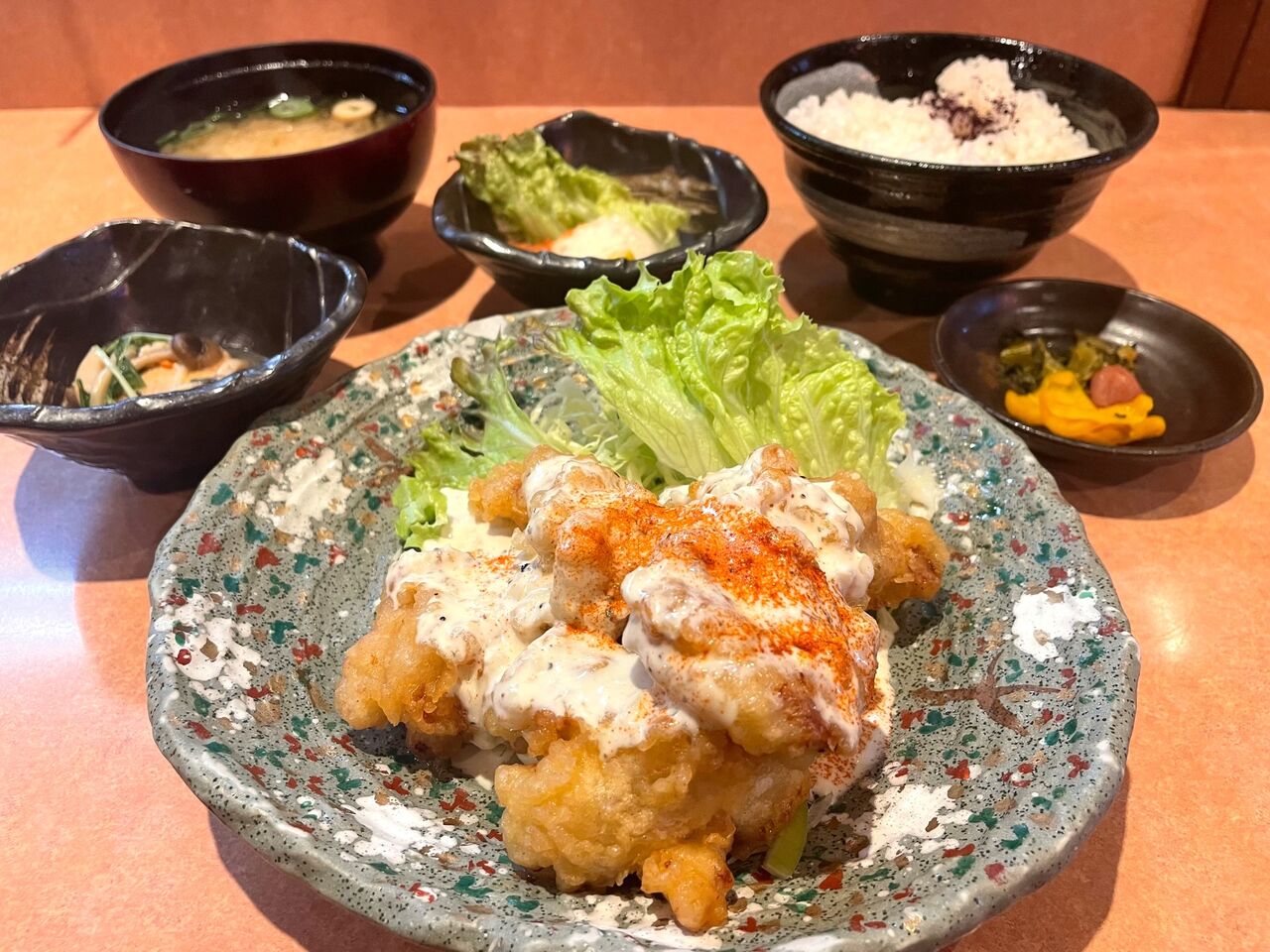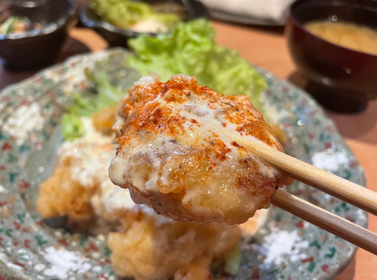 これが優しい酸味の自家製タルタルソースと相性バツグン! ジューシーで大きな鶏肉ながら衣が軽い口当たりなので、パクパクと一気に食べ進めてしまいます。