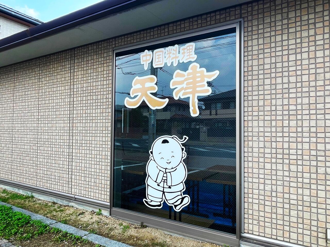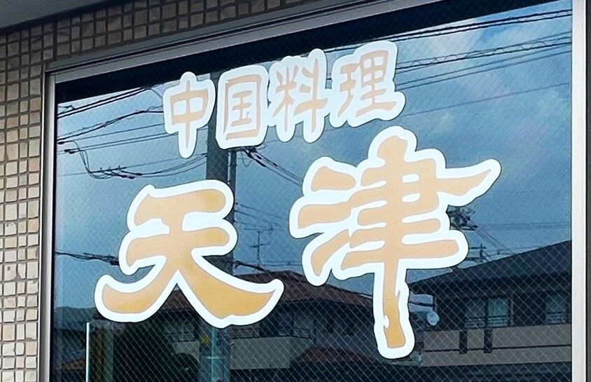 こちら道に面しているお店の窓です。可愛らしい子どものイラストの上、お店のお名前『中国料理 天津』とあるのですが…この“天津”の書体、どこかで見たことがあります…どこか…どこだっけ………あ―――――っ!!!!