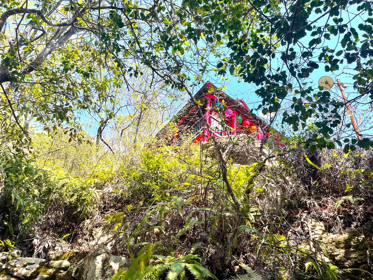 階段のない道が岩肌を回り込むように少しあり、見上げたその先にようやく『七星堂』らしき建物の一角が見えました! 最後にもう少しだけ石積みの階段がありますが、あと一息と思えば足に力も入ります。