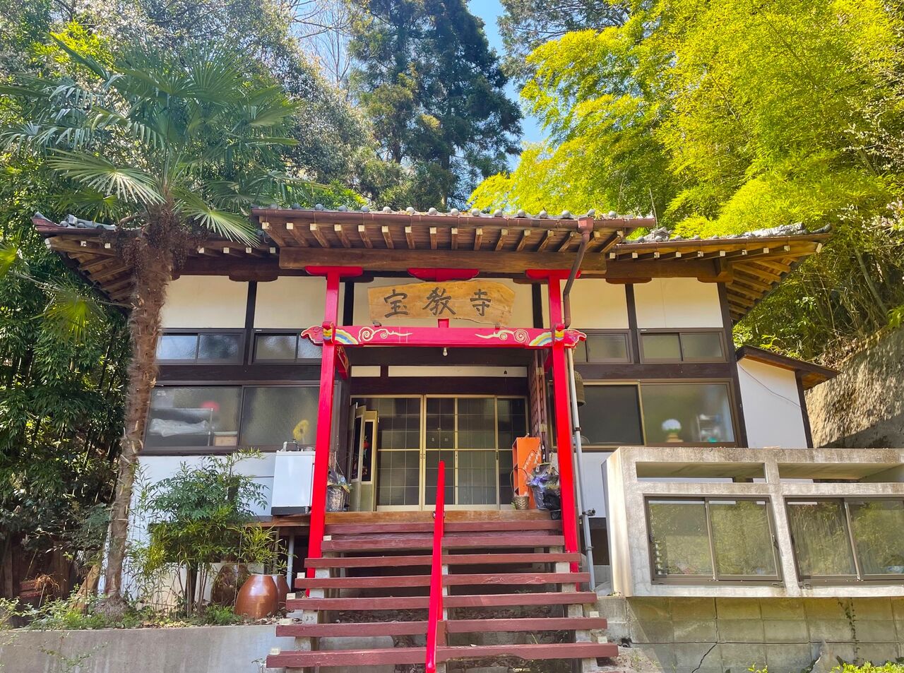 ここに本日の目的地のひとつ「宝教寺」の看板が。約3分とあります。え?もうあと3分で着いてしまうんですか? まだまだハイキングをしている気分にはなっていないのですが、これは予想以上に近いロケーション?