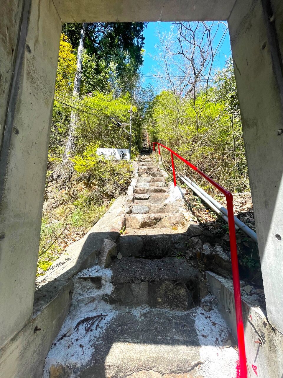 門の下に立ってみて呆然……天に続くかの如く、果てが見えない&傾斜の厳しい&長~~~~~~~~~~~い階段が!ここは敢えての縦画面でお届けします! 思わず、昔に観た『天国の階段』というタイトルの韓国ドラマを思い出しました。本当に天まで届きそう…!