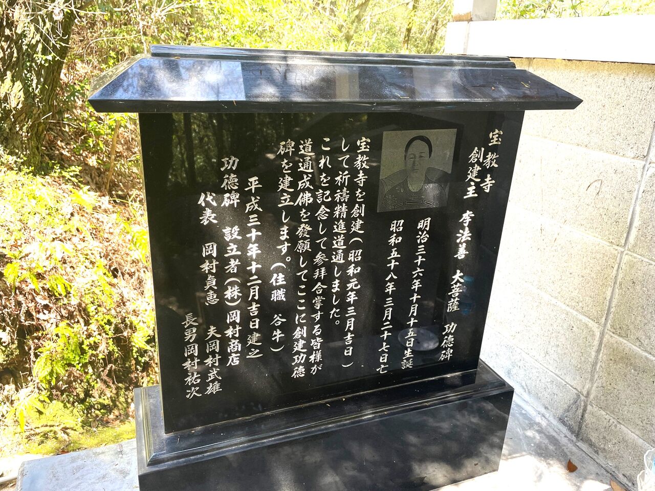 山神堂のそばには、李法善さんという方がこのお寺を創建されたと記された石碑もありました。