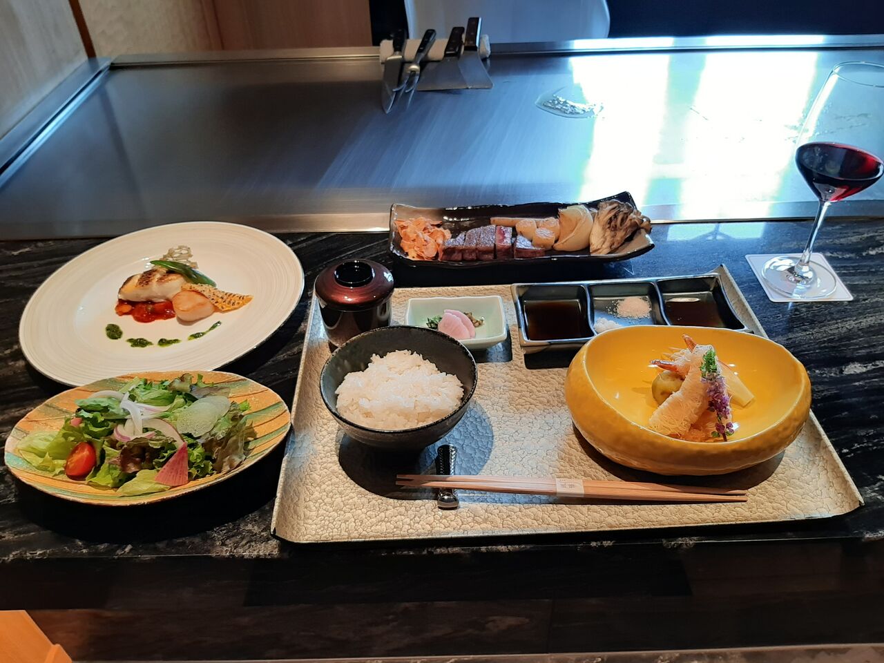 個室もありますが、(別途料金有り) 通常のスペースでもゆったりとした椅子で大劇場を眺めながら鉄板焼きパフォーマンスを味わうことができます。
