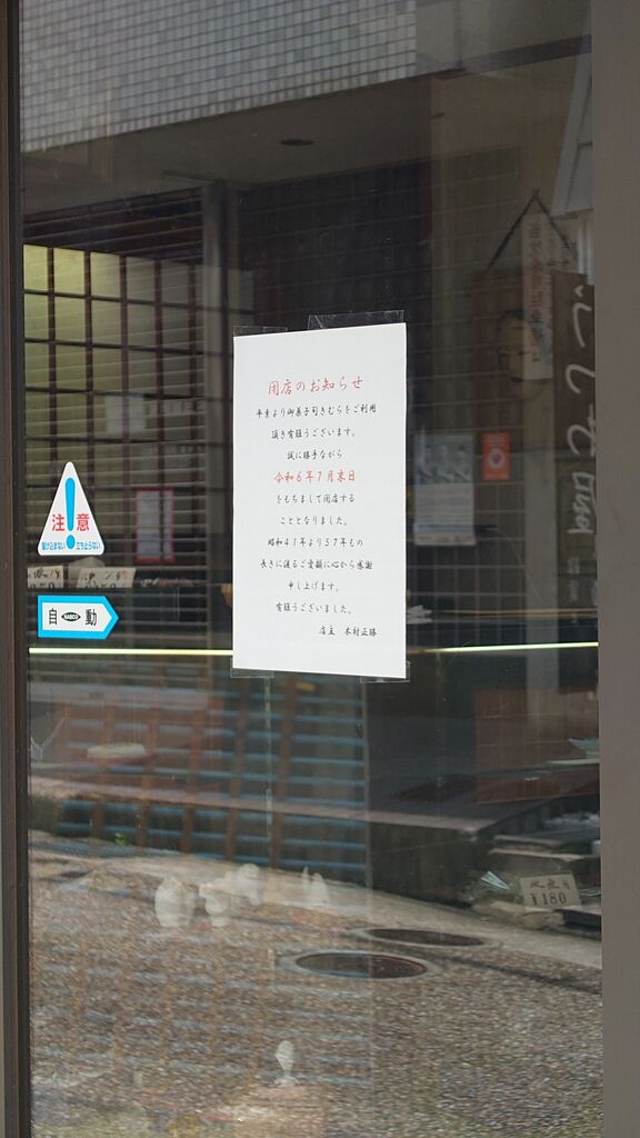 2024年07月19日 【宝塚市 閉店情報】創業57年、御菓子司「きむら」が7月末で閉店します。今までありがとうございました。 カテゴリ:スイーツ・パン開店・閉店 『ゆゆ様』よりお写真2枚と、以下の情報を送っていただきました。逆瀬川駅前で長く営業されている和菓子屋さんの「きむら」さんが、7月末で閉店されます。お写真にある張り紙によりますと、昭和41年より、57年間にわたって営業されてたということです。7月末まで営業されているので、最後にもう一度『きむら』を味わいたい方は、ぜひ行ってみてはいかがでしょうか。『ゆゆ様』ありがとうございました。以上、宝塚の情報を発信する宝塚コミパ通信SAでした。お菓子司きむら宝塚市逆瀬川2-6-6 タグ :#和菓子#逆瀬川 「グルメ」カテゴリの最新記事 【宝塚市 イベント】『ウィルキンソンの日』制定記念セレモニーが行われました☆【宝塚市 周辺花火大会】夏といえば打ち上げ花火!宝塚からも気軽に出かけられる花火大会4選
