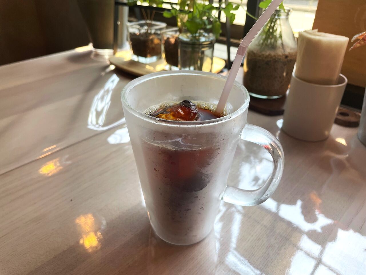 ちょうど空いていたので、外の景色も眺められる窓際の席に。テーブルの上にも植物があって、とっても癒されますね~。