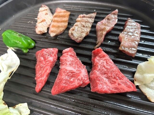 どれがカルビで上ロースなのか分からなくなり、とても綺麗なお肉だったので、サッと焼いて次々に食べてしまいました。