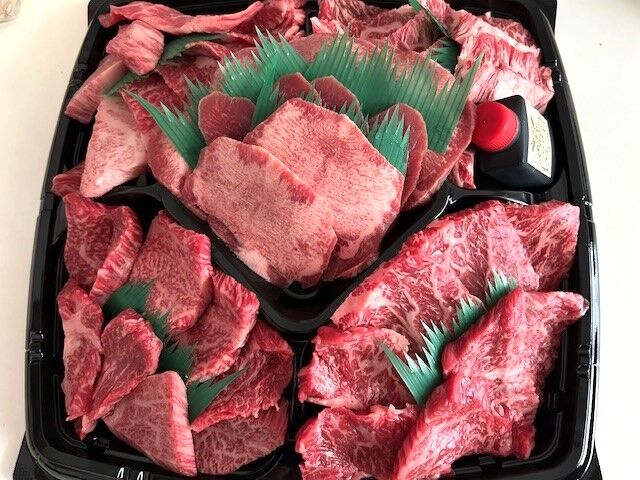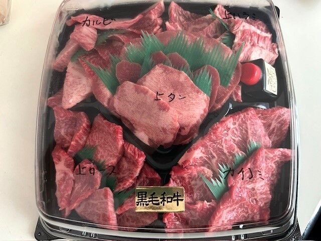 内容は、カルビ、上ハラミ、上タン、上ロース、カイノミが入っています。