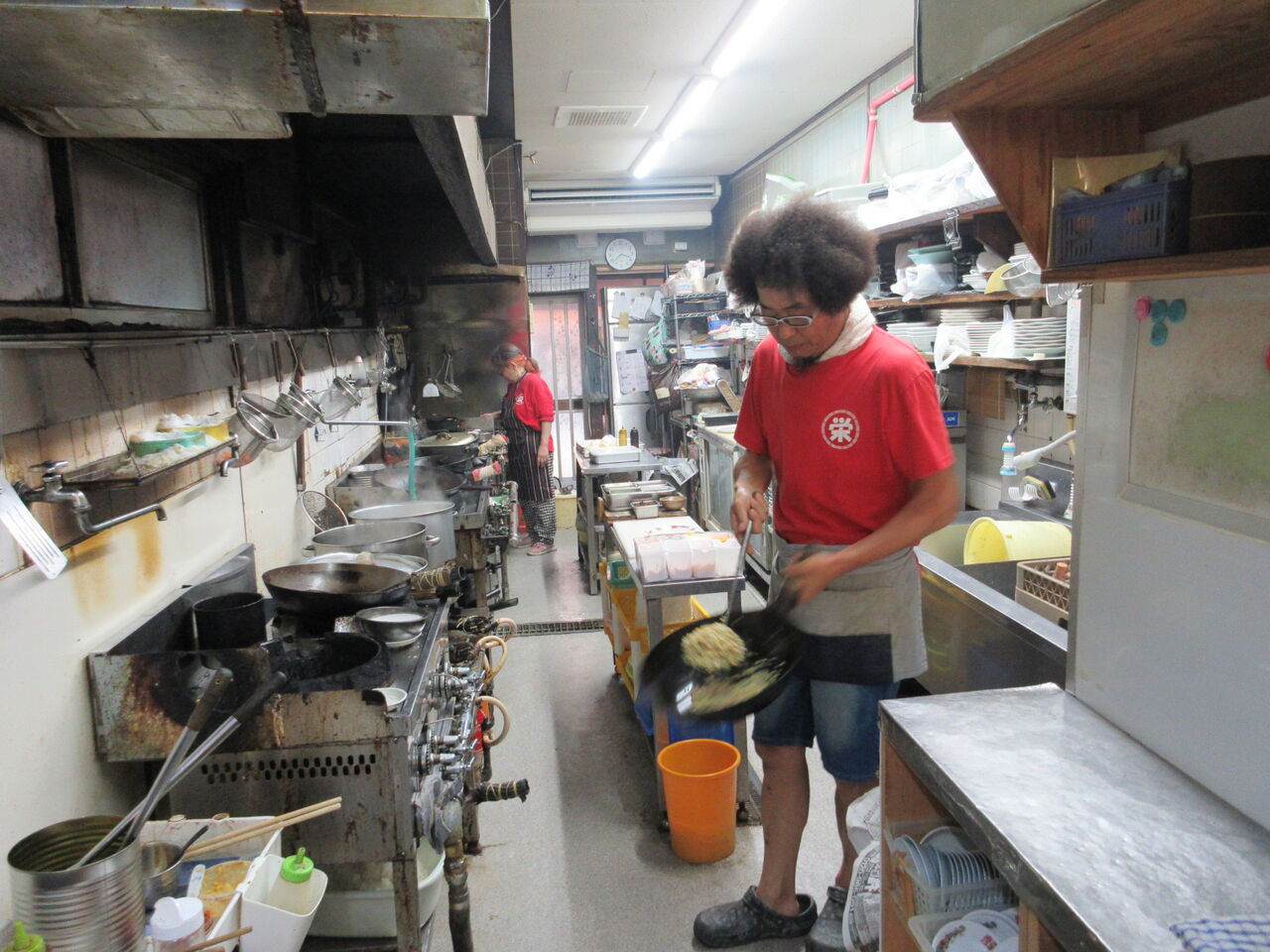 栄飯店のアフロ大将が作る炒飯、一丁あがり!